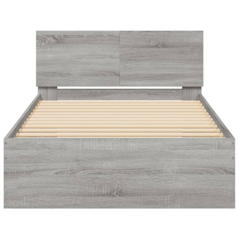 Рамка за легло с табла и LED осветление, сив сонома, 100x200 см