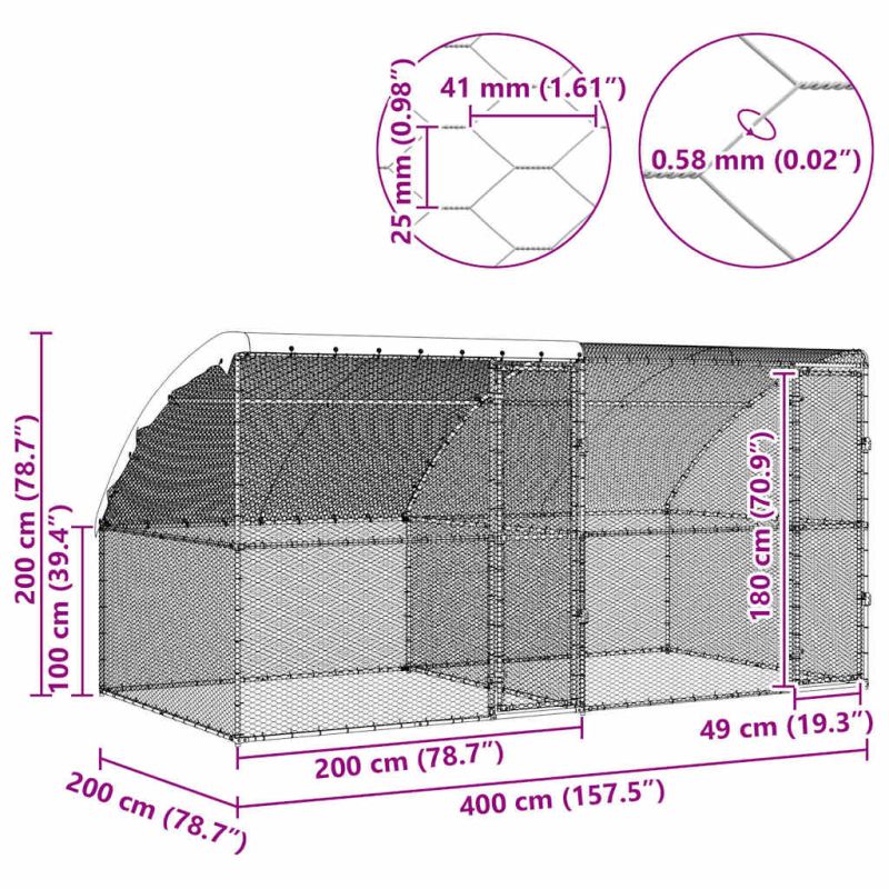 Клетка за пилета Сребрист 400 x 200 x 198.5 см