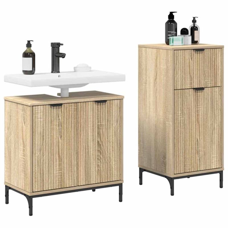 Комплект мебели за баня с чекмедже с рафт 2 pcs Сонома дъб