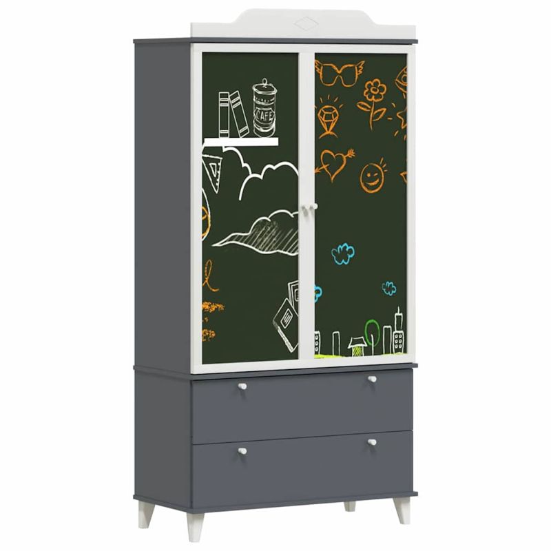 Дъска за записки Гардероб с рафт Сиво и бяло Инженерно дърво