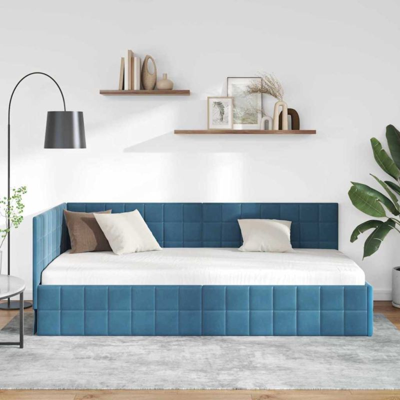 - Купете Ъглова рамка за легло с таблото Синьо 90 см x 190 см Кадифе или друг продукт от нашата промоционална секция за да получите 3% отстъпка.