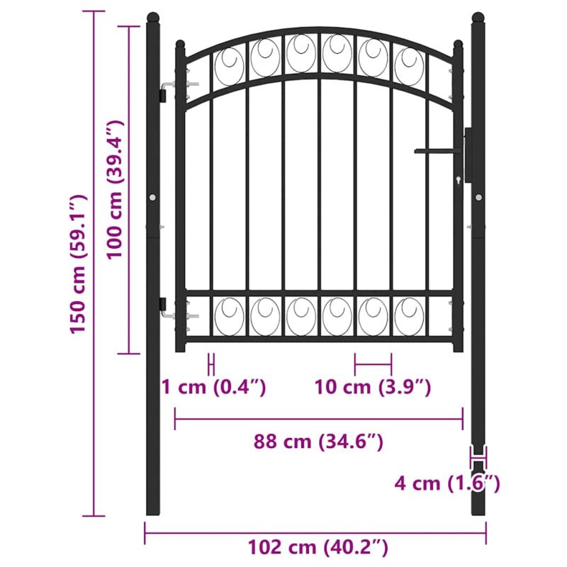 Оградна врата с арковидна горна част стомана 100x100 см черна