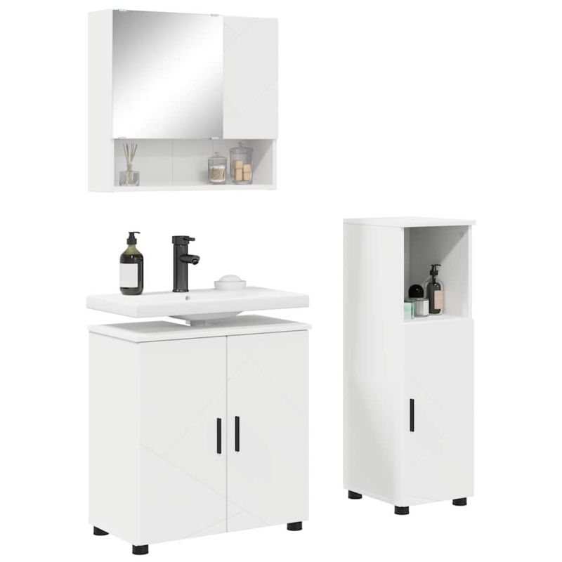 Комплект мебели за баня 3 pcs Бяло Инженерно дърво & Метал