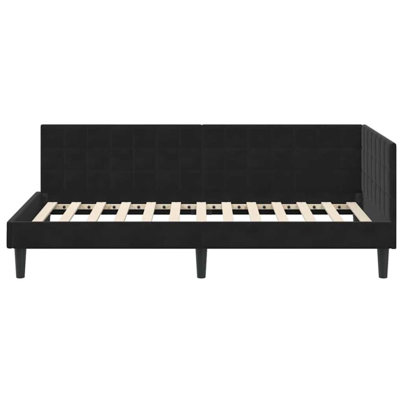 Ъглова рамка за легло с таблото Черно 90 см x 190 см Кадифе