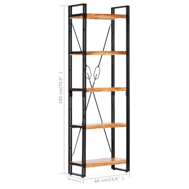 Библиотека с 5 рафта, 60x30x180 см, акация масив