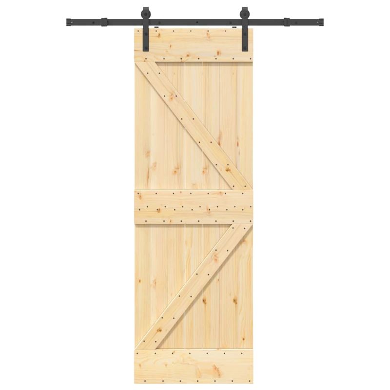 Плъзгаща врата с монтажни части, 70x210 см, борово дърво масив