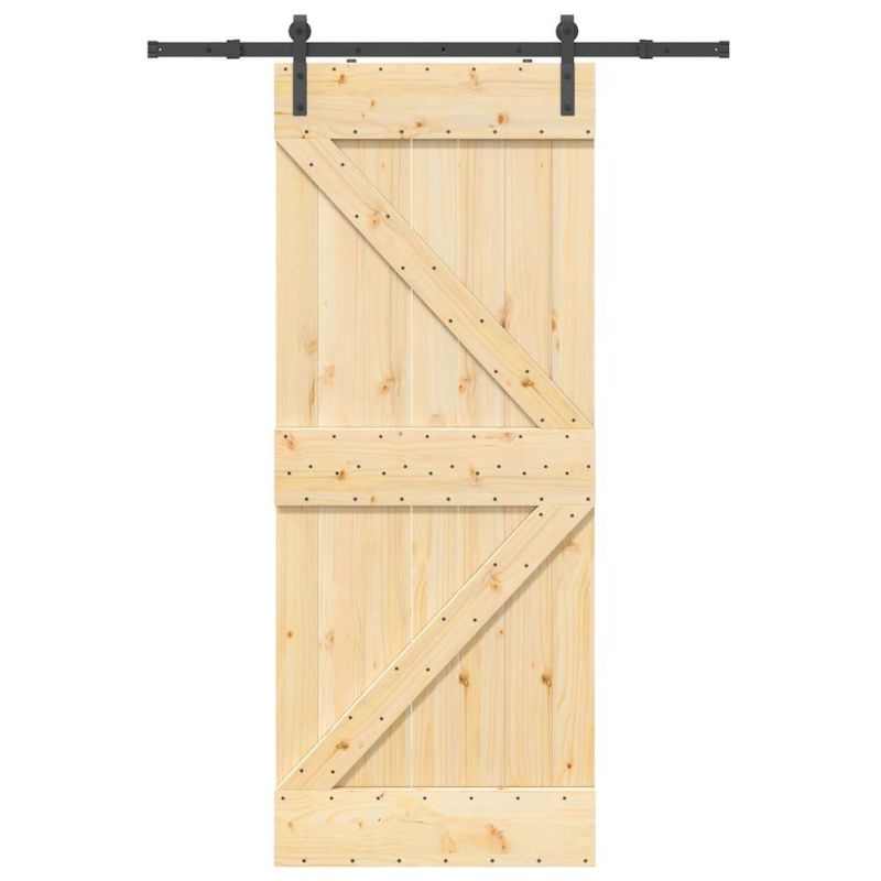 Плъзгаща врата с монтажни части, 85x210 см, борово дърво масив
