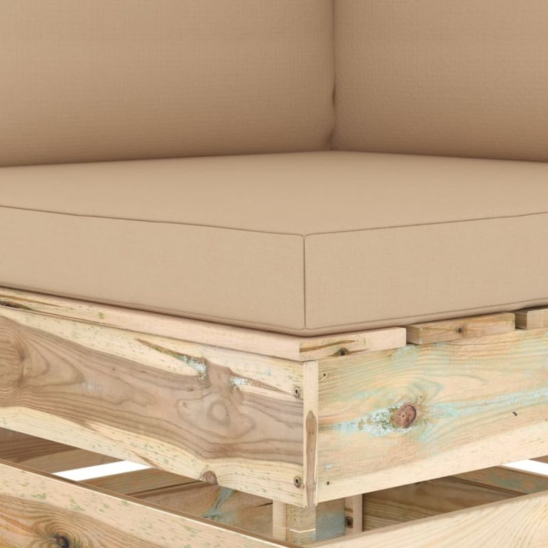 Секционен ъглов диван с възглавници, зелено импрегнирано дърво