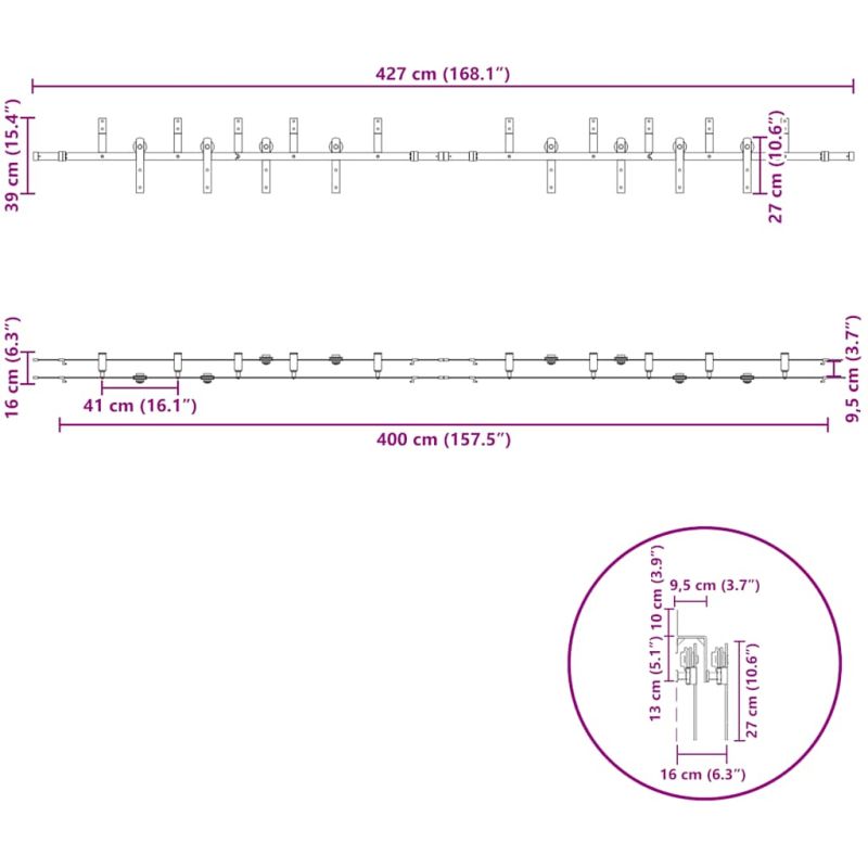 Комплект механизъм за плъзгаща врата, 427 см, стомана, черен