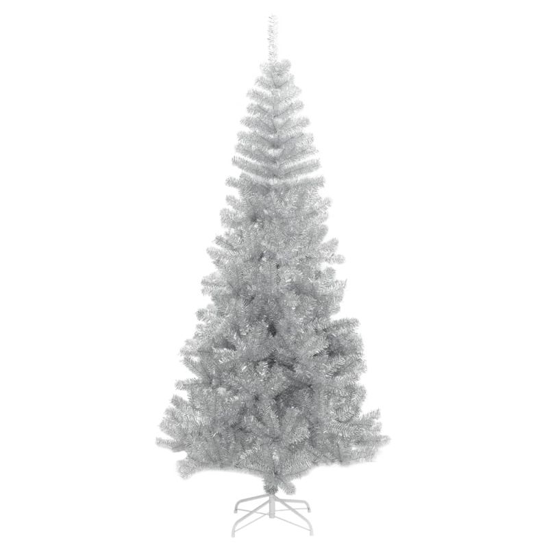 Изкуствена коледна елха със стойка сребриста 210 см PET