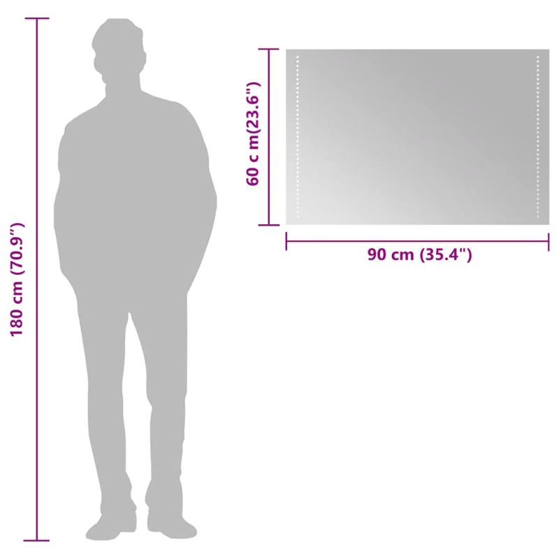 Това стилно LED огледало за баня е предназначено да бъде съществен елемент от вашата баня. Клас на защита IP65: Козметичното огледало отговаря на стандарта IP65, което означава, че то е водоустойчиво и подходящо за всяко мокро помещение.Удобен USB интерфейс: LED огледалото е оборудвано с USB интерфейс, който го прави много удобно за използване.Лесна инсталация: Огледалото за грим включва и кукички, за да завършите инсталацията. Забележка:Забележка:Продуктът има USB конектор, но не е включен сертифициран източник на захранване от 5V USB