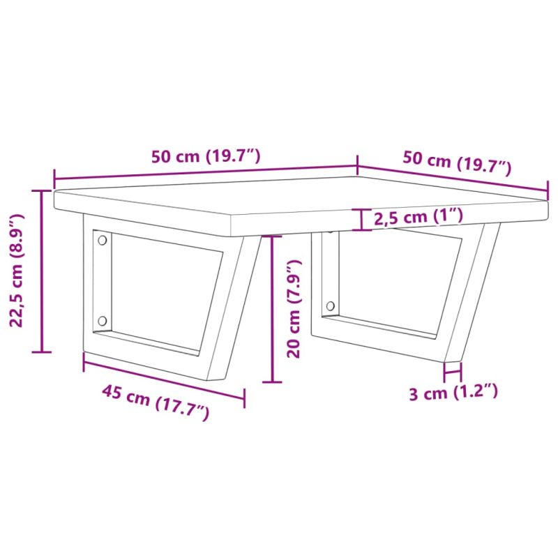 Стенният рафт за мивка се прикрепя сигурно към стената, осигурявайки елегантно и спестяващо място решение за вашата баня. Здрав и дълготраен: Този рафт за мивка е комбиниран със стоманена конструкция и плот от масивна дъбова дървесина, което го прави здрав, стабилен и дълготраен. Спестяване на място: Плаващият рафт за мивка има достатъчно място за съхранение на кремове и дребни предмети. Благодарение на трапецовидната форма можете да закачите кърпи или други неща на опората, за да спестите място. Лесен за използване: Плотът се доставя без дупки, за да позволи на мивката да се монтира отляво, отдясно или в центъра, в зависимост от изискванията на вашето помещение. Благодарение на предварително пробитите отвори в държача, той може лесно да се сглоби с плота и да се монтира на стената. Широки приложения: Благодарение на модерния си дизайн, осигурява допълнително пространство за различни видове бани. Добре е да се знае:Винтовете не са включени, можете да закупите винтовете отделно въз основа на информацията, предоставена по-долу. Прикрепване към стена: 2 бр дюбели M8 на скоба Дървен плот: 2 бр M5x18 винта (T=2) или 2 бр M5x20 винта (T=2,5/4 см) на скоба