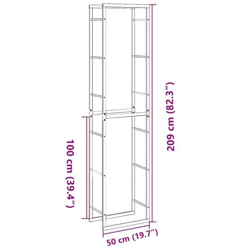 Стойка за дърва за огрев черна 50x30x209 cm стомана