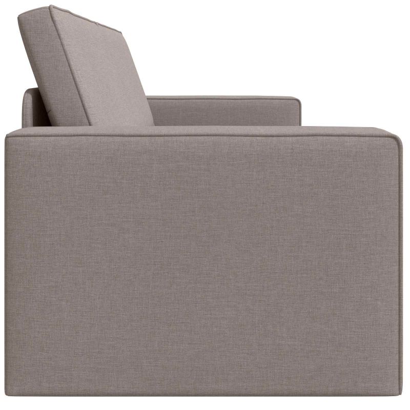 Този диван-легло съчетава стил и практичност, перфектен е за всяка съвременна всекидневна. С изчистения си дизайн и плавни линии повишава естетиката, докато предлага удобно решение за гости или за ежедневна употреба. Гладката текстура на тъканта носи уют в дома. Издръжливи материали: Със здрава метална и шперплатова рамка, този диван-легло е проектиран да издържа. Меката тъкан допълва устойчивата му конструкция. Тази комбинация предлага надеждно решение за сядане и спане за години напред. Преобразуваем дизайн: Диванът лесно се превръща в легло благодарение на прост механизъм, което е чудесно за малки пространства или домове, които се нуждаят от многофункционални мебели. Комфортно сядане: Полиестерният материал на седалката и пълнителите от пяна и фибри предлагат отличен комфорт. С плоски подлакътници, този диван е подходящ за дълги часове с книга или играене на игри. Лесна сглобяемост: Сглобява се бързо от двама с отвертка и ясни инструкции за лесна настройка. Удобство за поддръжка: Сменяемите покривала с цип позволяват лесно почистване и поддръжка, запазвайки вида на дивана с времето. Просто свалете, измийте и ги сложете отново.
