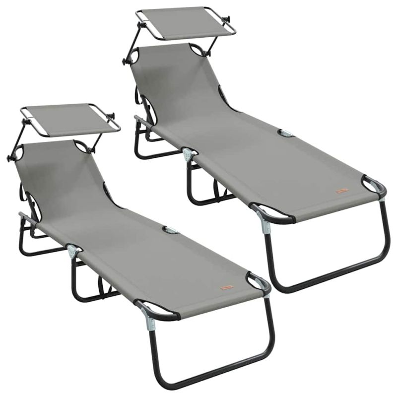 Сгъваем шезлонг с възглавница 2 pcs Сив 56 x 190 x 81cm текстил