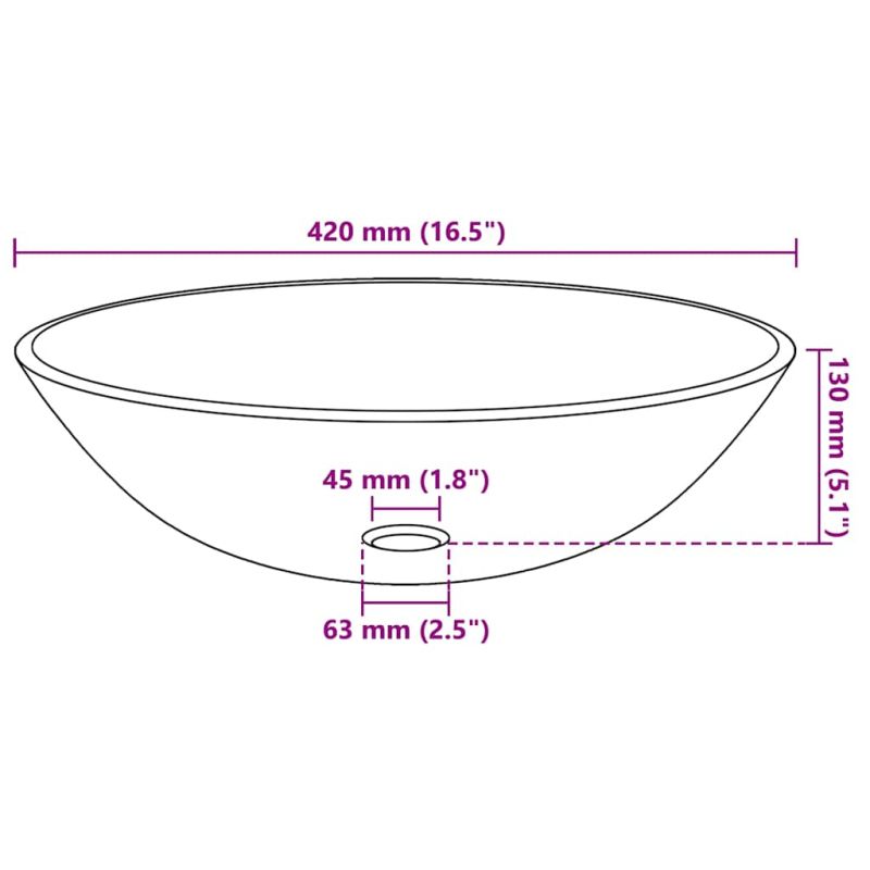 Тази мивка, изработена от висококачествено закалено стъкло, боядисано в меден оттенък, ще направи стилно допълнение към всяка баня, тоалетна или стая за гримиране. Тя е проектирана за монтаж над плот. Този атрактивен умивалник е не само практичен за ежедневна употреба, но е и истинско украшение за вашето жизнено пространство. Той би отговорил на всеки интериорен стил. Освен това умивалникът е много лесен за почистване. Дренажният отвор е с диаметър 4,5 см. Моля, имайте предвид, че смесителят не е включен в доставката. Децата трябва да бъдат наблюдавани, за да се гарантира, че не играят с уреда. Пазете децата далеч от зоната за сглобяване. Внимание: Прочетете внимателно инструкциите преди употреба и ги запазете за по-нататъшни справки.