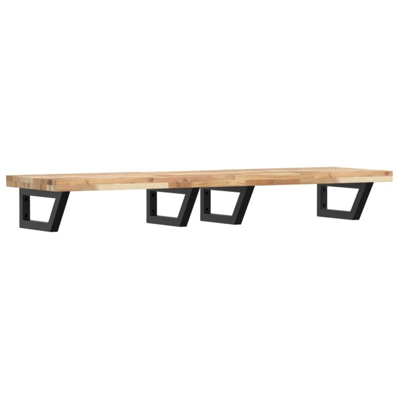 Стенният рафт за мивка се прикрепя сигурно към стената, осигурявайки елегантно и спестяващо място решение за вашата баня. Здрав и дълготраен: Този рафт за мивка е комбиниран със стоманена конструкция и плот от масивна акациева дървесина, което го прави здрав, стабилен и дълготраен.Спестяване на място: Плаващият рафт за мивка има достатъчно място за съхранение на кремове и дребни предмети. Благодарение на трапецовидната форма можете да закачите кърпи или други неща на опората, за да спестите място.Лесен за използване: Плотът се доставя без дупки, за да позволи на мивката да се монтира отляво, отдясно или в центъра, в зависимост от изискванията на вашето помещение. Благодарение на предварително пробитите отвори в държача, той може лесно да се сглоби с плота и да се монтира на стената.Широки приложения: Благодарение на модерния си дизайн, осигурява допълнително пространство за различни видове бани. Добре е да се знае:Винтовете не са включени, можете да закупите винтовете отделно въз основа на информацията, предоставена по-долу.Прикрепване към стена: 2 бр дюбели M8 на скобаДървен плот: 2 бр M5x18 винта (T=2) или 2 бр M5x20 винта (T=2,5/4 см) на скоба