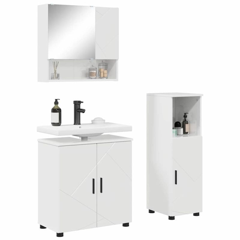 Комплект мебели за баня Монтиране на стена 3 pcs Лъскаво бяло