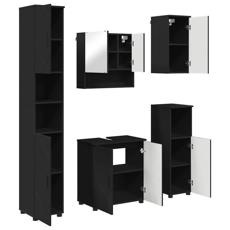 Комплект мебели за баня 5 pcs Черно Инженерно дърво & Метал