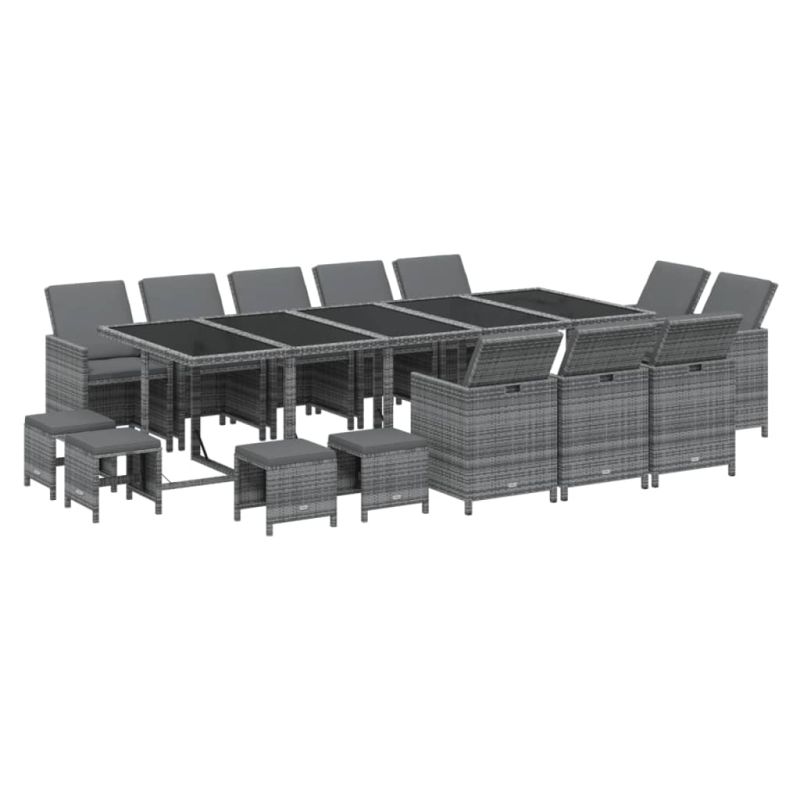 Градински комплект с възглавници 15 части полиратан сив