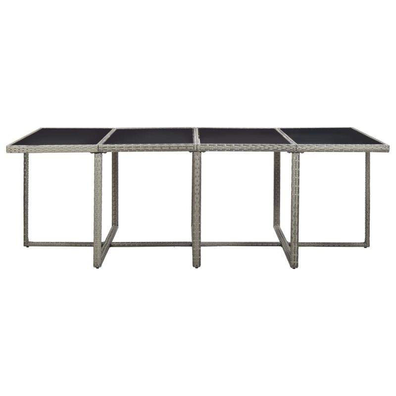 Нашите стилни ратанови градински мебели ще се превърнат в акцент на вашата градина, веранда или вътрешен двор! Този ратанов трапезен комплект с елегантен дизайн ще бъде чудесен избор за хранене на открито или за напитки и отмора в градината. Прахово боядисаните стоманени рамки правят масата, столовете и табуретките здрави и трайни, а, благодарение на леките им конструкции, всички тези мебели се местят лесно. Изработени от устойчив на атмосферни влияния и водоустойчив PE ратан, комплектът градински мебели се поддържа лесно. Стъкленият плот на масата се почиства бързо с влажна кърпа. Дебелите, меки и пълни с пяна възглавници за седалките и облегалките са изключително комфортни и изработени от водоустойчив полиестер. Калъфките са снабдени с ципове и могат да се свалят и изперат. Доставката включва 1 маса, 8 стола, 4 табуретки и 20 възглавнички. Забележка: Препоръчваме да покриете комплекта при дъжд, сняг и скреж.
