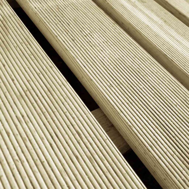 Поставете красив дървен под във вашата градина, на вътрешния двор или до плувен басейн с нашия комплект от 6 импрегнирани борови декинг плочки. Декинг плочките са изработени от импрегнирана борова дървесина, която е здрава, устойчива на атмосферни влияния и гниене. Красивите дървесни шарки придават рустик чар и правят всяка бройка уникална. Доставката включва 6 декинг плочки. Забележка: Дървото е естествен материал и може да има несъвършенства.