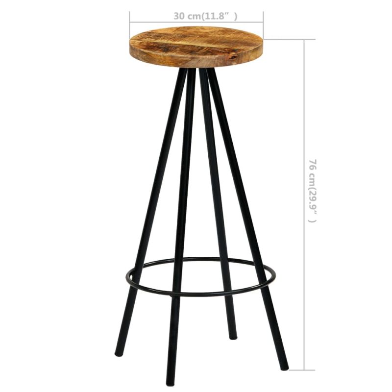 Този комплект рустик бар табуретки излъчва индустриален стил и ще бъде чудесно допълнение към декора на вашата кухня или трапезария! Със седалки от мангово дърво масив и здрави стоманени рамки, комплектът бар столове е здрав и издръжлив. Поставките за крака допринасят за удобството на седене на комплекта, както и за индустриалния му вид. Всеки етап от процеса на изработка се извършва с най-голямо внимание, било то полиране, боядисване или лакиране. Монтажът е лесен. Доставката включва 2 бар стола. Важна забележка: Цветът и шарките на дървото могат да варират, което прави всяка мебел уникална и малко по-различна от останалите. Доставката е на случаен принцип. Максимално 110 кг на седалка.