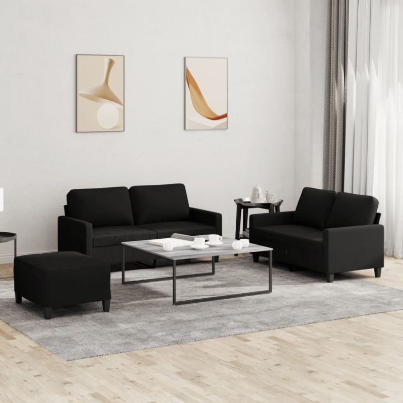 Този комплект дивани е отлично място за вашето време за разговори, четене, гледане на телевизия или просто почивка. Той е предназначен да бъде фокусна точка във вашия дом. Издръжлив текстил: Материята се отличава със семпъл и изчистен вид, като същевременно остава дишаща и дълготрайна.Здрава и стабилна рамка: Шперплатът и металната рамка на седалката на дивана осигуряват здравина и стабилност.Удобна седалка: Диванът е много удобен с дебело подплатената седалка и подлакътници.Функционална табуретка: Табуретката е подходяща за повдигане за крака, когато лежите на диван, или ви предлага допълнително място за сядане във вашата стая. Освен това семплият дизайн и компактният размер я правят идеална за сядане почти навсякъде в жилищното ви пространство. Максимално 110 кг на седалка. Съобразете се с риска от открит огън и други източници на силна топлина в близост до продукта.