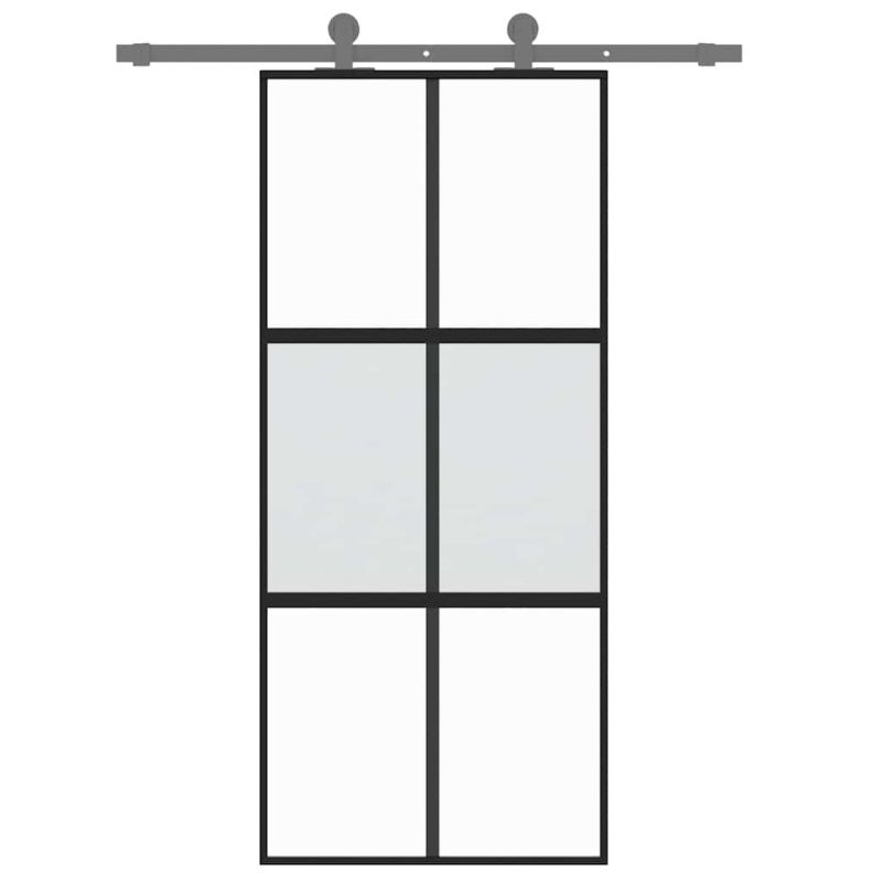 Плъзгаща се врата, черна, 90x205 см, закалено стъкло и алуминий