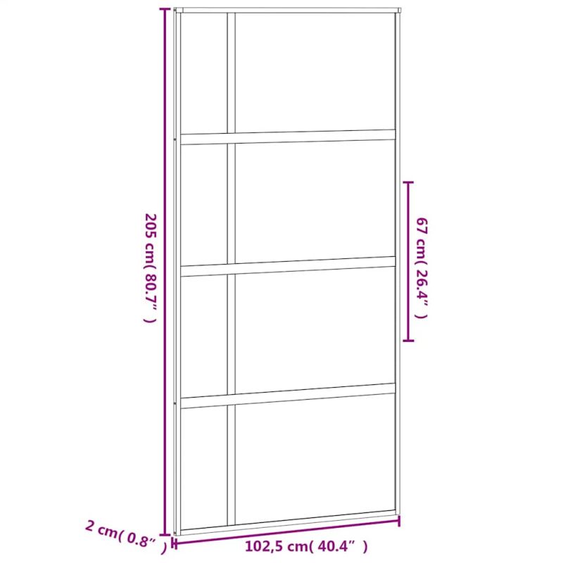 С тази плъзгаща се врата създавате елегантен преход от едно пространство към друго. Здрав материал: Благодарение на интелигентната структура закаленото стъкло е по-здраво и по-издръжливо от всяко друго стъкло. Закаленото стъкло е известно с това, че издържа на въздействие, като силни удари, драскотини, удари и др.Здрава метална рамка: Тази плъзгаща се врата има алуминиева рамка за издръжливост и стабилност.Безопасно и тихо плъзгане: Благодарение на ограничителя, вътрешната плъзгаща се врата може да се отваря и затваря тихо чрез буферен механизъм.Практичен дизайн: Панелът на вратата е изработен от матово стъкло и прозрачно стъкло, което не само пропуска светлина, но и гарантира вашето уединение.Тънък дизайн: Тънкият дизайн на рамката придава на плъзгащата се стъклена врата модерен и минималистичен вид. Добре е да се знае:Вратата може да се монтира само в комбинация с комплекти обков за плъзгащи се врати. Можете да намерите подходящите комплекти обков за плъзгащи се врати в нашия магазин.За начина на инсталиране можете да разгледате нашето ръководство за инсталиране на комплектите обков за врати и плъзгащи се врати.