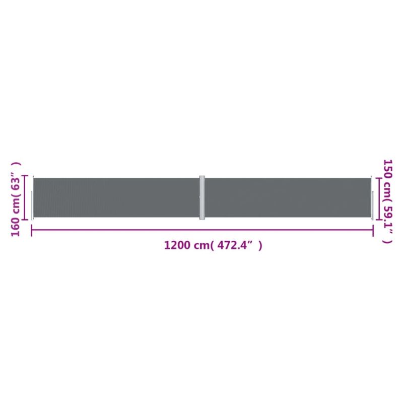 Прибираща се странична тента, антрацит, 160х1200 см