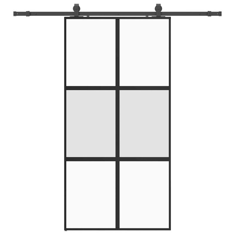 Създайте стилен преход от една стая към друга с тази плъзгаща се врата! Издръжлив материал: Благодарение на интелигентната си структура закаленото стъкло е по-здраво и издръжливо от всяко друго стъкло. Закаленото стъкло е известно с това, че издържа на силни удари, надрасквания, удари и др.Стабилна и дълготрайна рамка: Алуминият е едновременно лек и издръжлив, с отлична устойчивост на корозия благодарение на самозащитния си оксиден слой. Тази алуминиева врата е проектирана за дълготрайност, което я прави идеален избор за всеки, който търси стабилна врата.Безопасен и безшумен: Благодарение на стопера, който спира вратата при отваряне или затваряне чрез задействане на стоп буферите, плъзгащата се врата може да се отваря и затваря безшумно.Дизайн за поверителност: Матираното стъкло пропуска част от светлината, за да създаде светла жилищна площ и едновременно с това неприкосновеност на личния живот.Спестяващ място дизайн: Тази плъзгаща се врата спестява място и прави стаята по-просторна. Тя е първият избор за семпъл и атмосферичен интериорен дизайн в модерен стил.Лесен за използване: В обхвата на доставката е включен и комплект обков за плъзгащи се врати, така че монтажът е безпроблемен. Комплектът обков е изработен от прахово боядисана стомана и по този начин допринася за здравината на вратата. Добре е да се знае:За монтажа можете да се консултирате с нашето ръководство за монтаж на комплектите за врати и плъзгащи се врати.