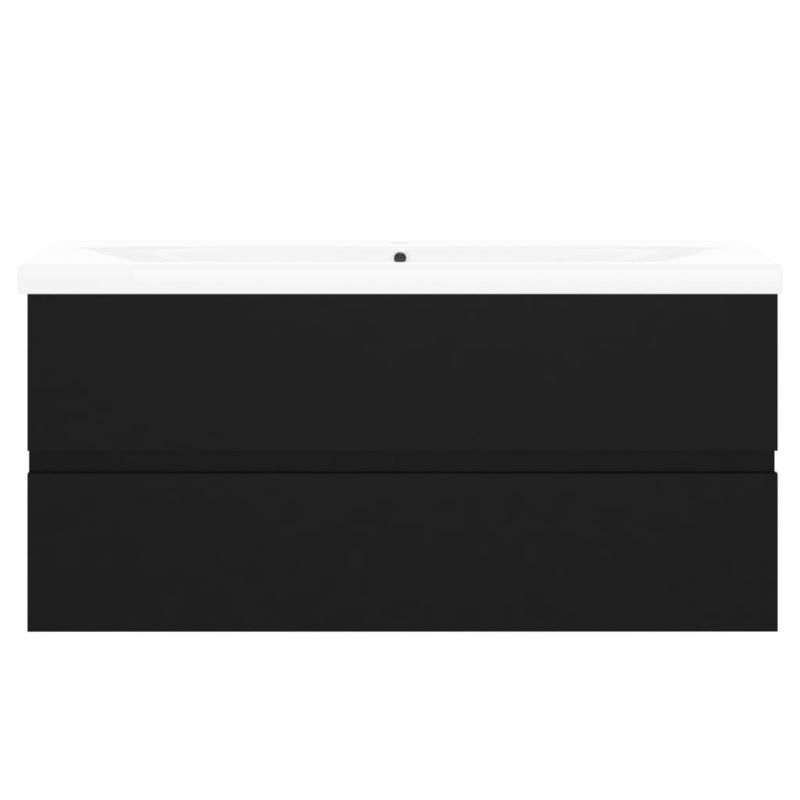 Шкаф за баня с вградена мивка, черен, инженерно дърво