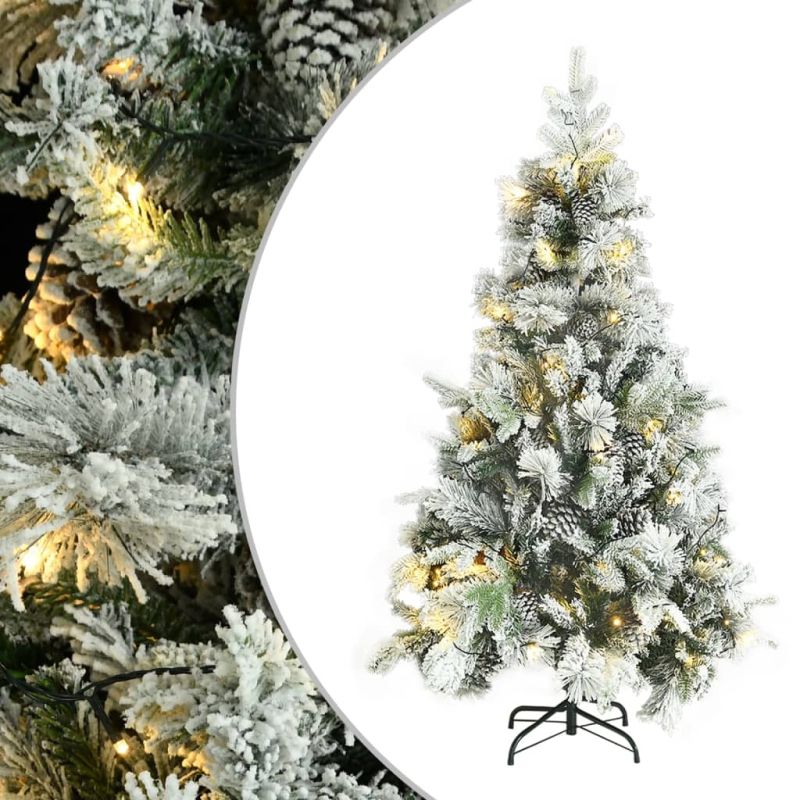 Осветена коледна елха с флокиран сняг и шишарки 195 см PVC и PE