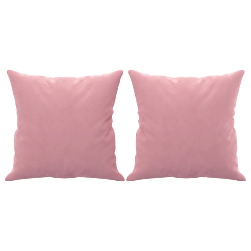 2-местен диван с декоративни възглавници розов 140 см кадифе