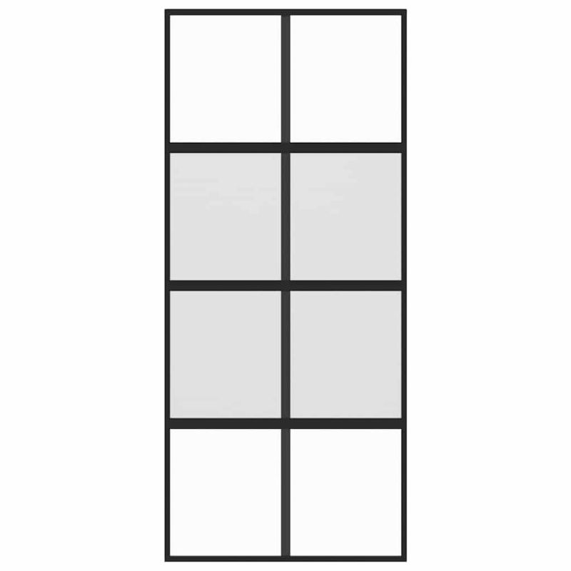 Плъзгаща се врата, черна, 90x205 см, закалено стъкло и алуминий