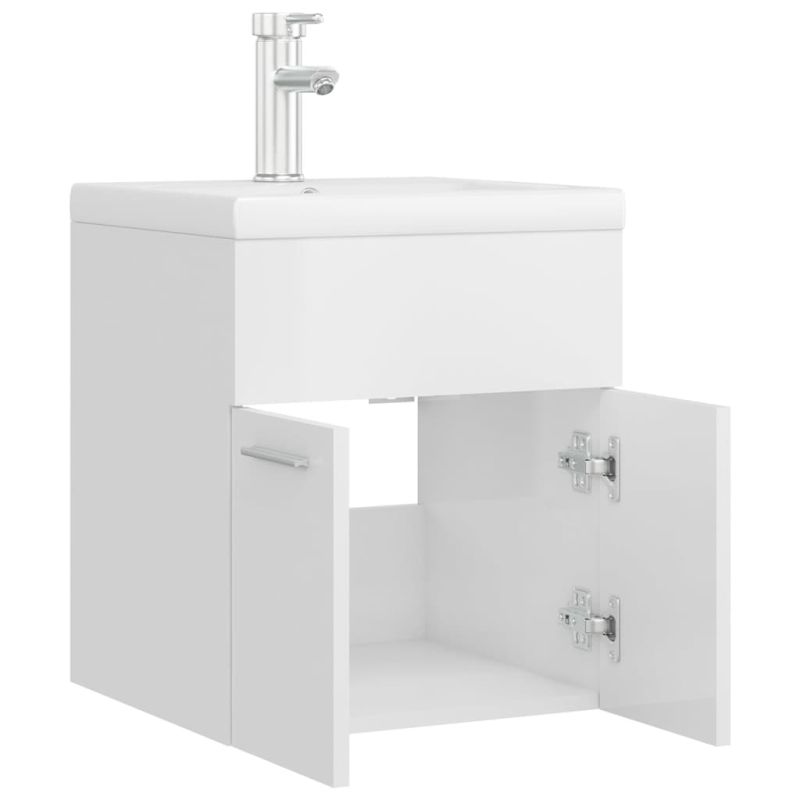 Шкаф за баня с вградена мивка, бял гланц, инженерно дърво