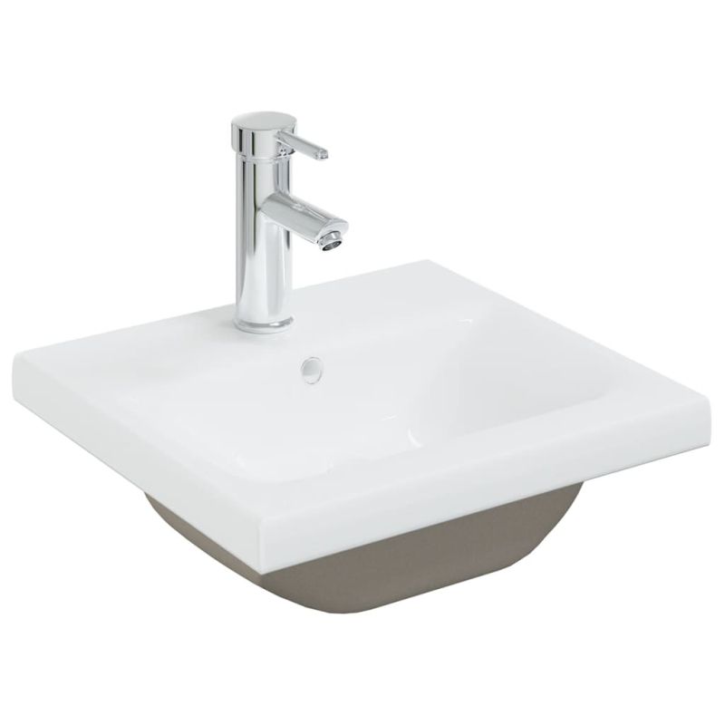 Този шкаф за баня с вградена мивка е идеален за вашата баня или тоалетна с впечатляваща, спретната визия. Шкафът е изработен от инженерно дърво, което го прави здрав и стабилен. Шкафът за съхранение има 1 отделение и 2 врати, предлагащи достатъчно място за съхранение на вещи. Пасва идеално под мивката ви и прави съхранението в банята доста удобно. Изработена от керамика, мивката може да служи не само за ежедневна употреба, но и като украса във вашето жилищно пространство. Благодарение на модерния и съвременен дизайн, този умивалник определено ще подхожда на всеки декор. Също така е оборудвана с преливник за изтичане на вода, когато се напълни твърде много. Нейната лъскава повърхност носи модерен, но елегантен дизайн. Освен това шкафът и мивката се почистват лесно с влажна кърпа. Моля, обърнете внимание: Доставката включва кран и преливник. Децата трябва да бъдат наблюдавани, за да се гарантира, че няма да си играят с уреда. Пазете децата далеч от зоната за сглобяване.Внимание: Прочетете внимателно инструкциите преди употреба и ги запазете за по-нататъшни справки.