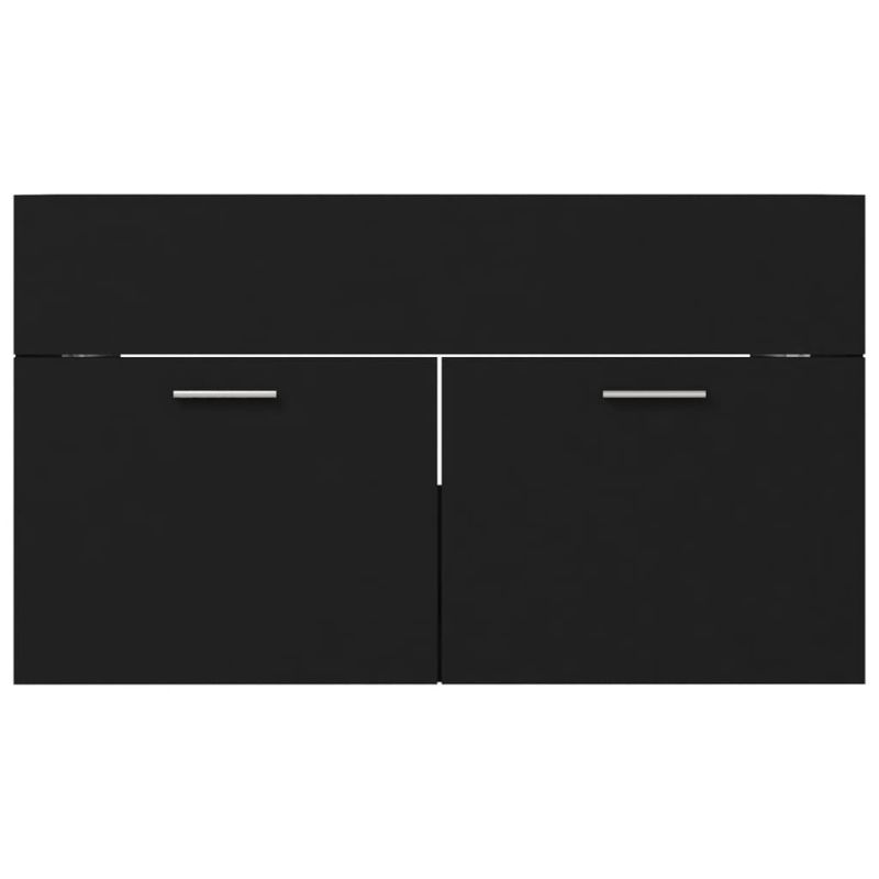 Шкаф за баня с вградена мивка, черен, инженерно дърво
