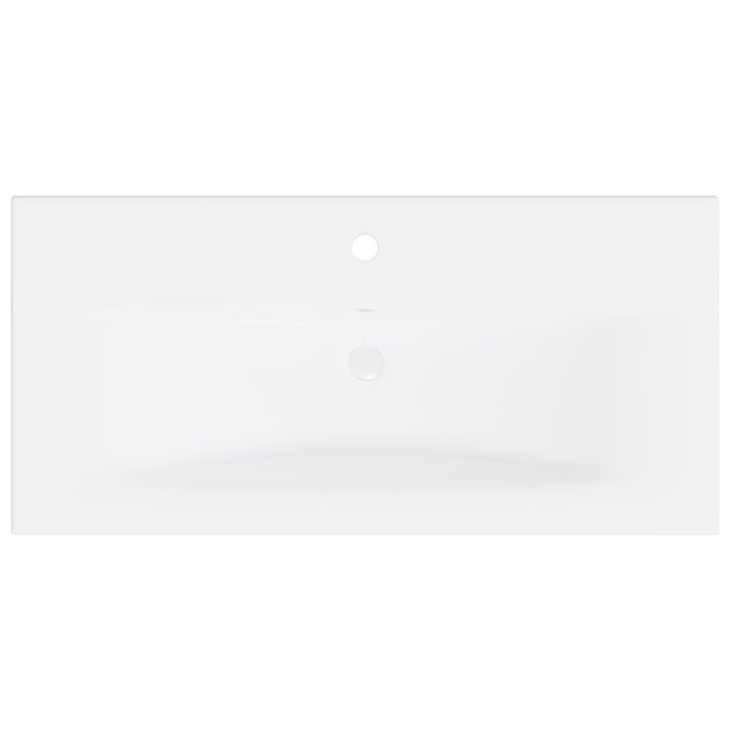 Този шкаф за баня с вградена мивка е идеален за вашата баня или тоалетна с впечатляваща, спретната визия. Шкафът е изработен от инженерно дърво, което го прави здрав и стабилен. Шкафът за съхранение има 1 отделение и 2 врати, предлагащи достатъчно място за съхранение на вещи. Пасва идеално под мивката ви и прави съхранението в банята доста удобно. Изработена от керамика, мивката може да служи не само за ежедневна употреба, но и като украса във вашето жилищно пространство. Благодарение на модерния и съвременен дизайн, този умивалник определено ще подхожда на всеки декор. Също така е оборудвана с преливник за изтичане на вода, когато се напълни твърде много. Нейната лъскава повърхност носи модерен, но елегантен дизайн. Освен това шкафът и мивката се почистват лесно с влажна кърпа. Моля, обърнете внимание: Доставката включва кран и преливник. Децата трябва да бъдат наблюдавани, за да се гарантира, че няма да си играят с уреда. Пазете децата далеч от зоната за сглобяване.Внимание: Прочетете внимателно инструкциите преди употреба и ги запазете за по-нататъшни справки.