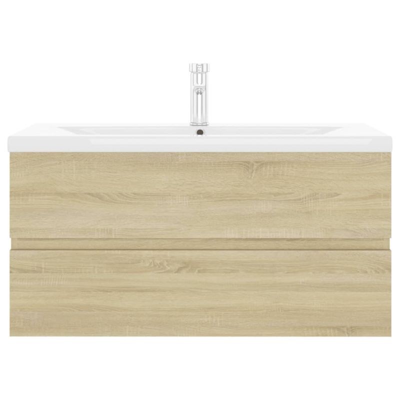 Шкаф за баня с вградена мивка, дъб сонома, инженерно дърво