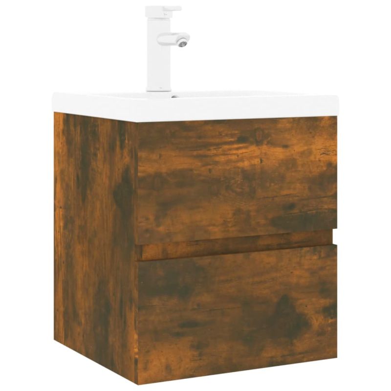 Шкаф за мивка с вградена мивка, опушен дъб, инженерно дърво
