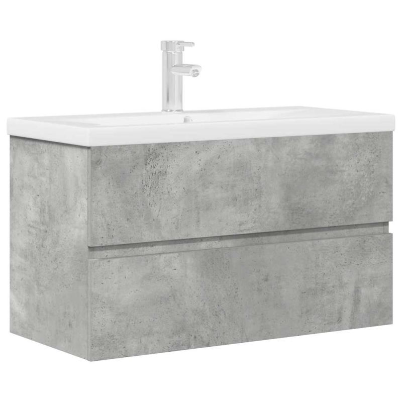 Комплект мебели за баня от 2 части бетонно сив инженерно дърво