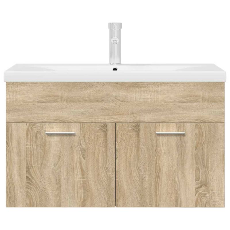 Шкаф за мивка за баня с вграден умивалник и смесител Дъб сонома