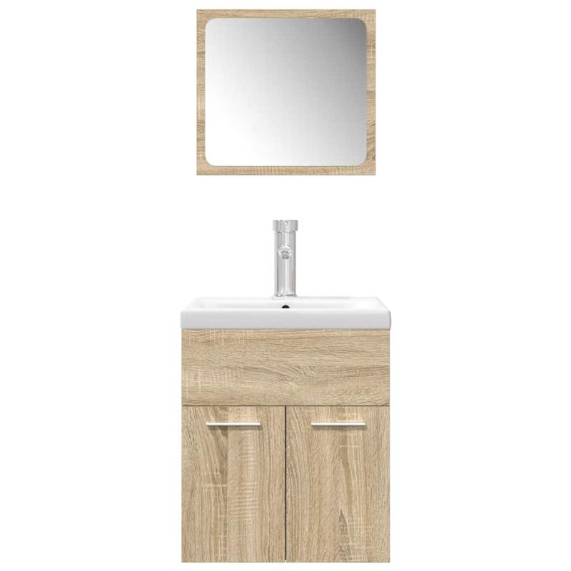 Комплект шкафове за баня от 3 части дъб сонома инженерно дърво