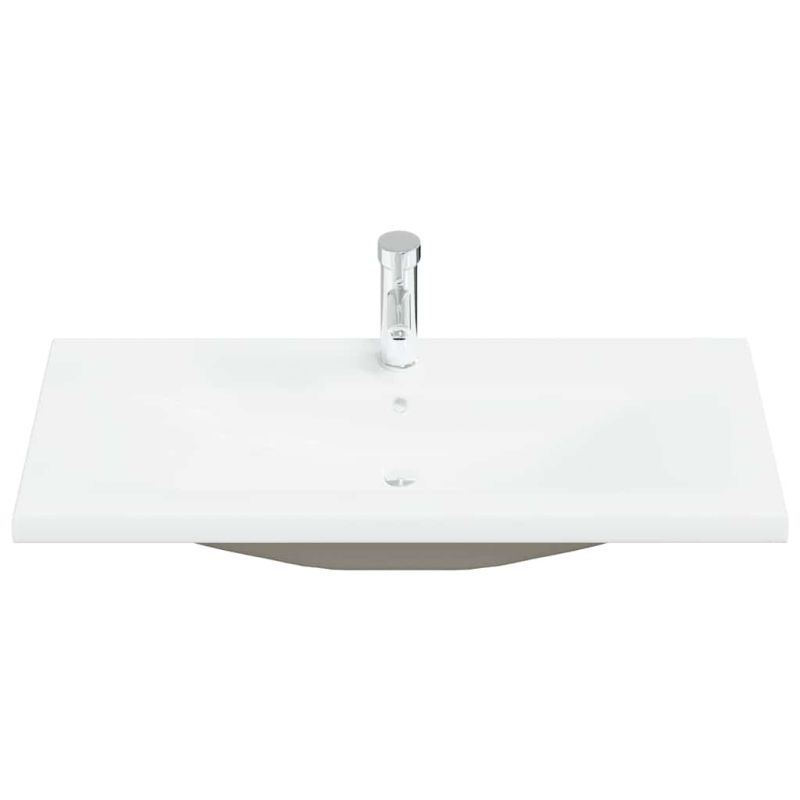 Този стилен комплект мебели за баня, разполагащ с просторно пространство за съхранение, е отлично допълнение към вашата баня, като ѝ придава подреден и впечатляващ вид! Здрав материал: Шкафът за под мивка е изработен от инженерна дървесина, която е с изключително качество с гладка повърхност и също така се отличава със здравина, стабилност и устойчивост на влага.Достатъчно място за съхранение: Мивката за баня предлага достатъчно място за съхранение на вещи в банята.Практичен дизайн: Плотът на този шкаф за баня е идеален за поставяне на мивката.Функция за стенен монтаж: Шкафът за баня може да се монтира на стена за допълнително място за съхранение. По този начин можете да увеличите максимално пространството на пода и да поддържате чистота.Преливник: Също така е оборудвана с преливник за изтичане на вода, когато се напълни твърде много. Добре е да се знае:Винт(ове) и щепсел(и) за вътрешността на стената не са включени. Търсете и използвайте винт(ове) и дюбел(и), подходящи за вашите стени. Ако не сте сигурни, потърсете професионална помощ. Прочетете и следвайте внимателно всяка стъпка от инструкциите.Включени са смесител и сифон клик-клак с преливник.Смесителят е за топла и студена вода, като при нужда от топла вода трябва да се свърже бойлер. Децата трябва да бъдат наблюдавани, за да се гарантира, че няма да си играят с уреда. Пазете децата далеч от зоната за сглобяване.Внимание: Прочетете внимателно инструкциите преди употреба и ги запазете за по-нататъшни справки.