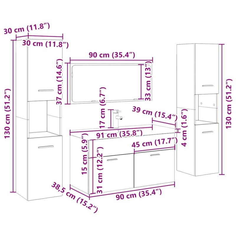 Комплект мебели за баня от 5 части старо дърво инженерно дърво