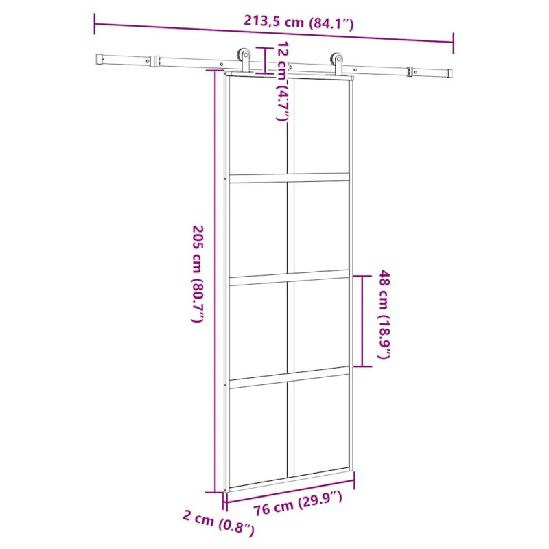 Плъзгаща се врата с обков 76x205 см Закалено стъкло&Алуминий