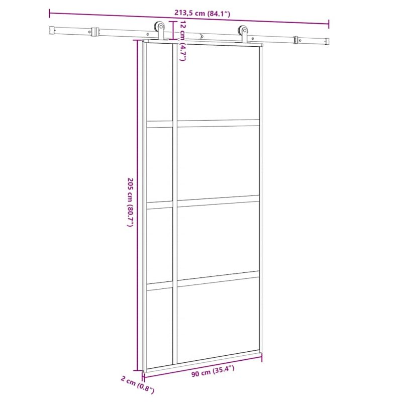 Плъзгаща се врата с обков 90x205 см Закалено стъкло и алуминий