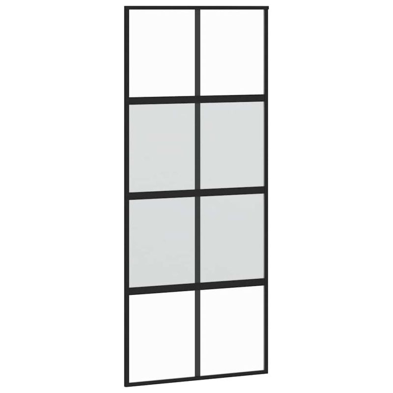 Създайте стилен преход от една стая към друга с тази плъзгаща се врата! Издръжлив материал: Благодарение на интелигентната си структура закаленото стъкло е по-здраво и издръжливо от всяко друго стъкло. Закаленото стъкло е известно с това, че издържа на силни удари, надрасквания, удари и др.Стабилна и дълготрайна рамка: Алуминият е едновременно лек и издръжлив, с отлична устойчивост на корозия благодарение на самозащитния си оксиден слой. Тази алуминиева врата е проектирана за дълготрайност, което я прави идеален избор за всеки, който търси стабилна врата.Безопасен и безшумен: Благодарение на стопера, който спира вратата при отваряне или затваряне чрез задействане на стоп буферите, плъзгащата се врата може да се отваря и затваря безшумно.Дизайн за поверителност: Матираното стъкло пропуска част от светлината, за да създаде светла жилищна площ и едновременно с това неприкосновеност на личния живот.Спестяващ място дизайн: Тази плъзгаща се врата спестява място и прави стаята по-просторна. Тя е първият избор за семпъл и атмосферичен интериорен дизайн в модерен стил.Лесен за използване: В обхвата на доставката е включен и комплект обков за плъзгащи се врати, така че монтажът е безпроблемен. Комплектът обков е изработен от прахово боядисана стомана и по този начин допринася за здравината на вратата. Добре е да се знае:За монтажа можете да се консултирате с нашето ръководство за монтаж на комплектите за врати и плъзгащи се врати. Не използвайте този артикул, ако някой от компонентите е счупен, скъсан или липсва.